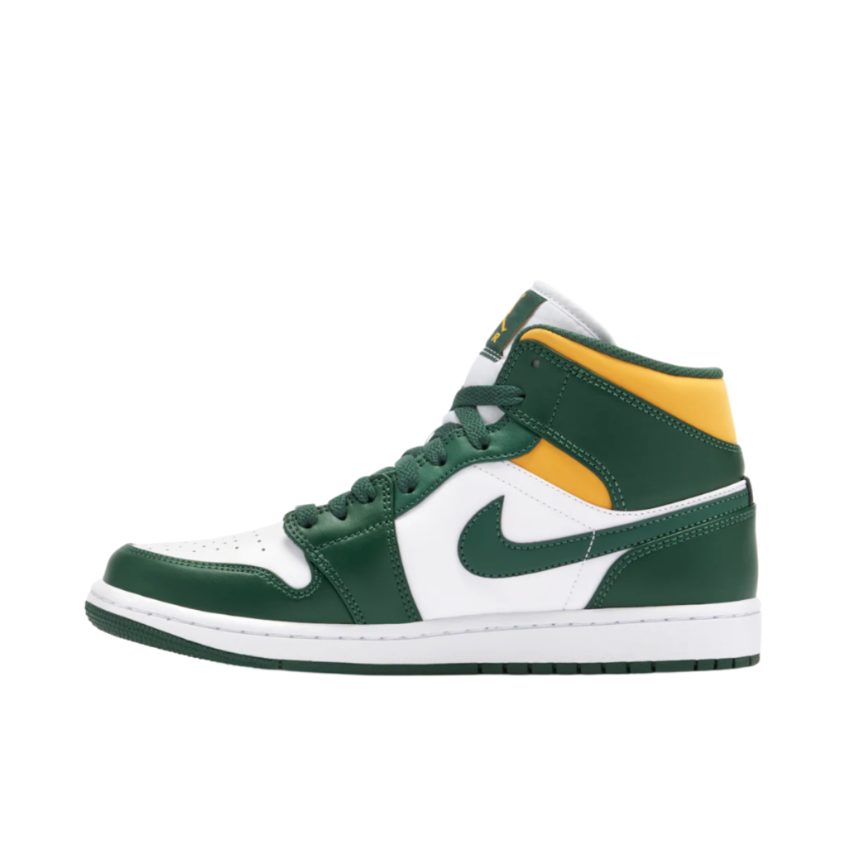 Make some room in your collection, because the Air Jordan 1 Mid Sonics 2021 is the next kick to demand a place in your daily rotation. Nodding to the original design, the upper is crafted from smooth leather with breathable perforations on the toe box for enhanced ventilation. Nike’s Swoosh sits on the sidewalls just below Jordan Brand’s signature Wings logo on the ankle. With lightweight cushioning and a textured tread delivering comfort and grip, the yellow and green colorway ensures these are effortless to style. An absolute must-have, get your hands on the Air Jordan 1 Mid Green Yellow now.